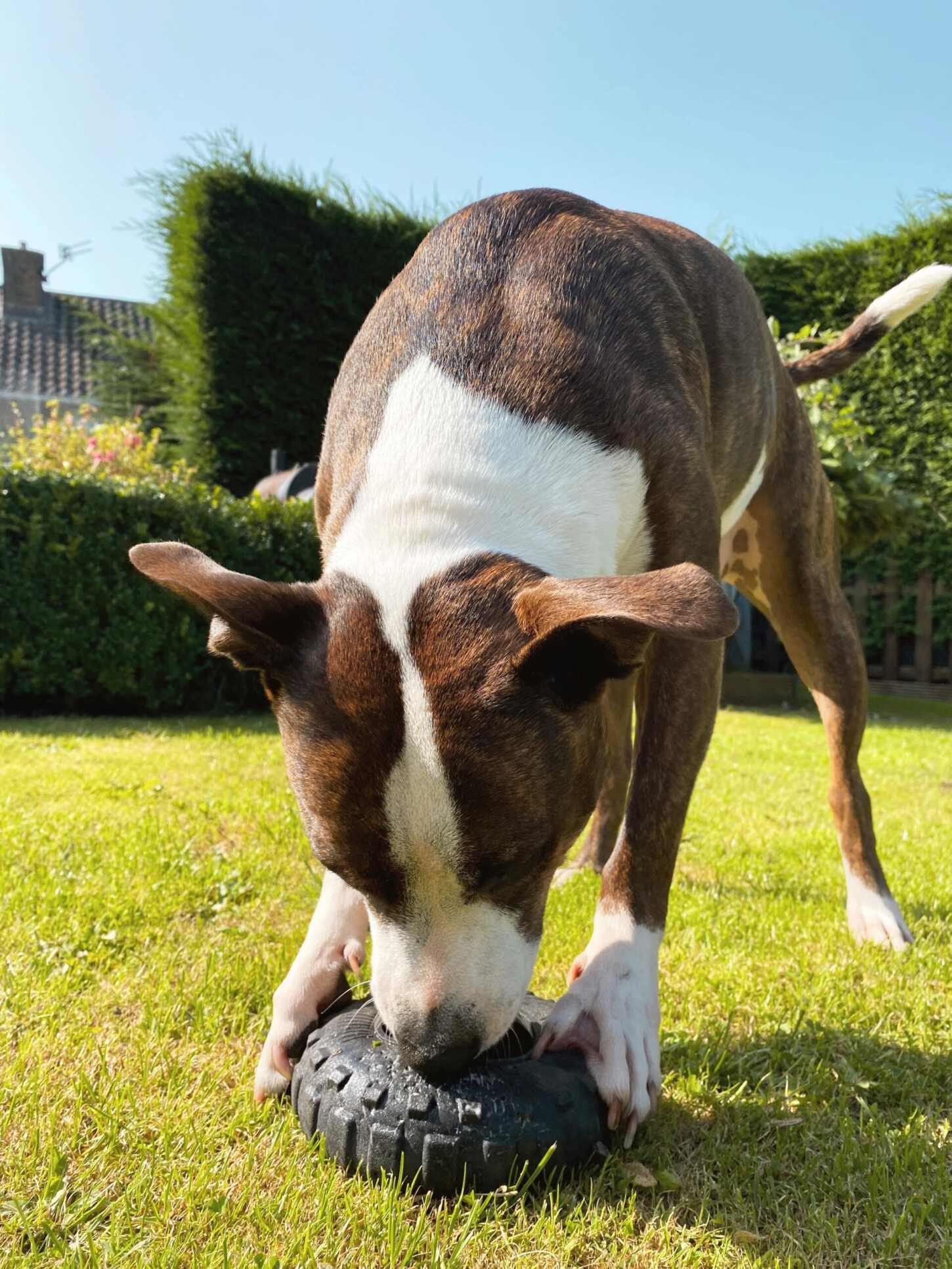 Frank soon decided he was going to pull the tread off the tyres, and quickly did, whereas Phoebe pulled small pieces from the inside of the tyre wall. However, they were still in one piece after half an hour, and were able to be put away for another play time.