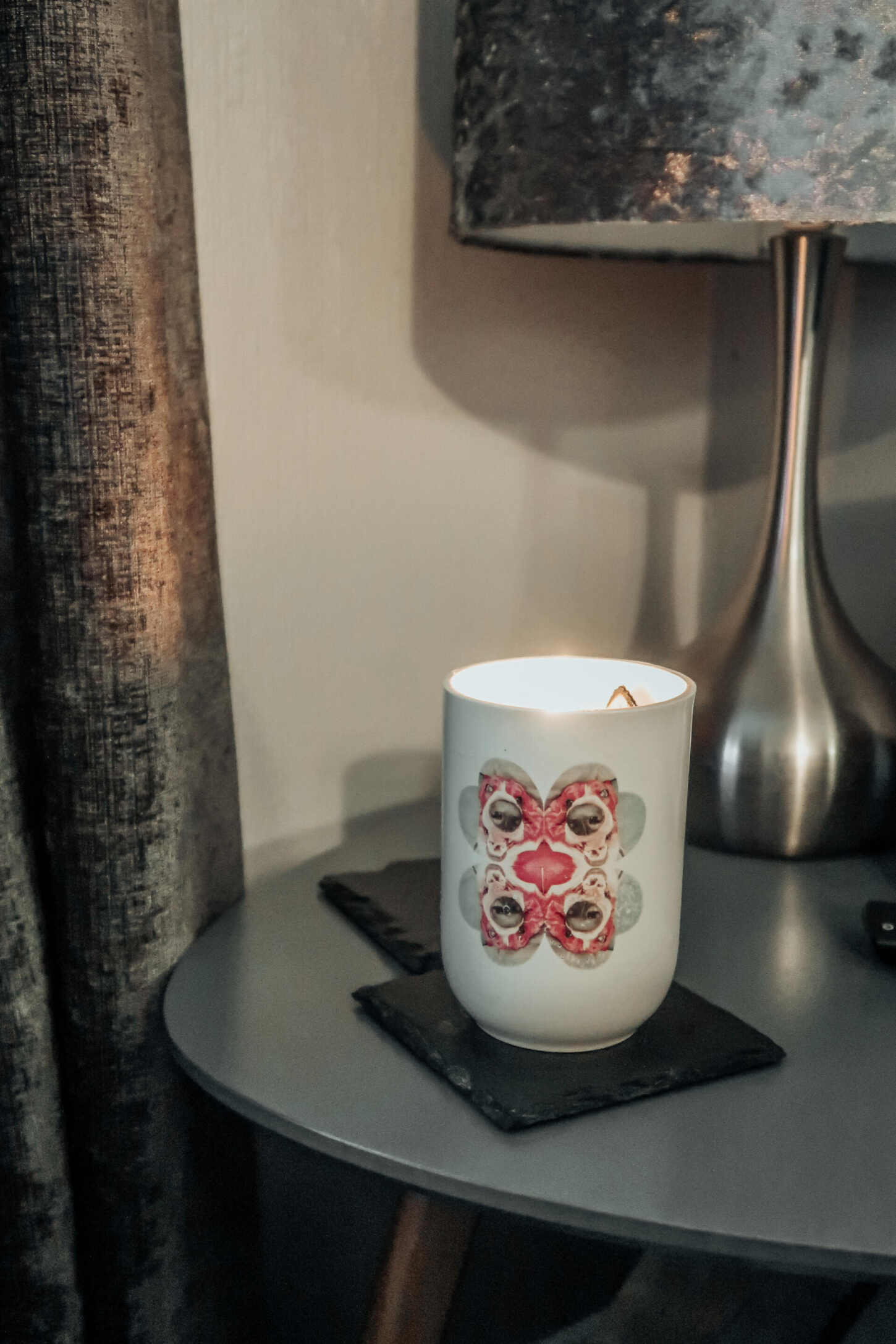 Natalie Simpson-Hancock is a Staffordshire-based creator true to her Stokie heritage, and has a keen interest in pottery. She noticed that the scent of ginger helped relax her wrinkly basset hound, Albert – and decided to launch this dog calming candle!