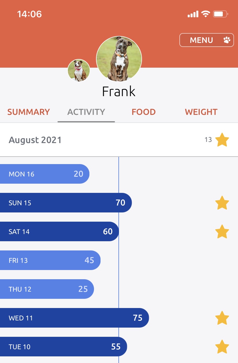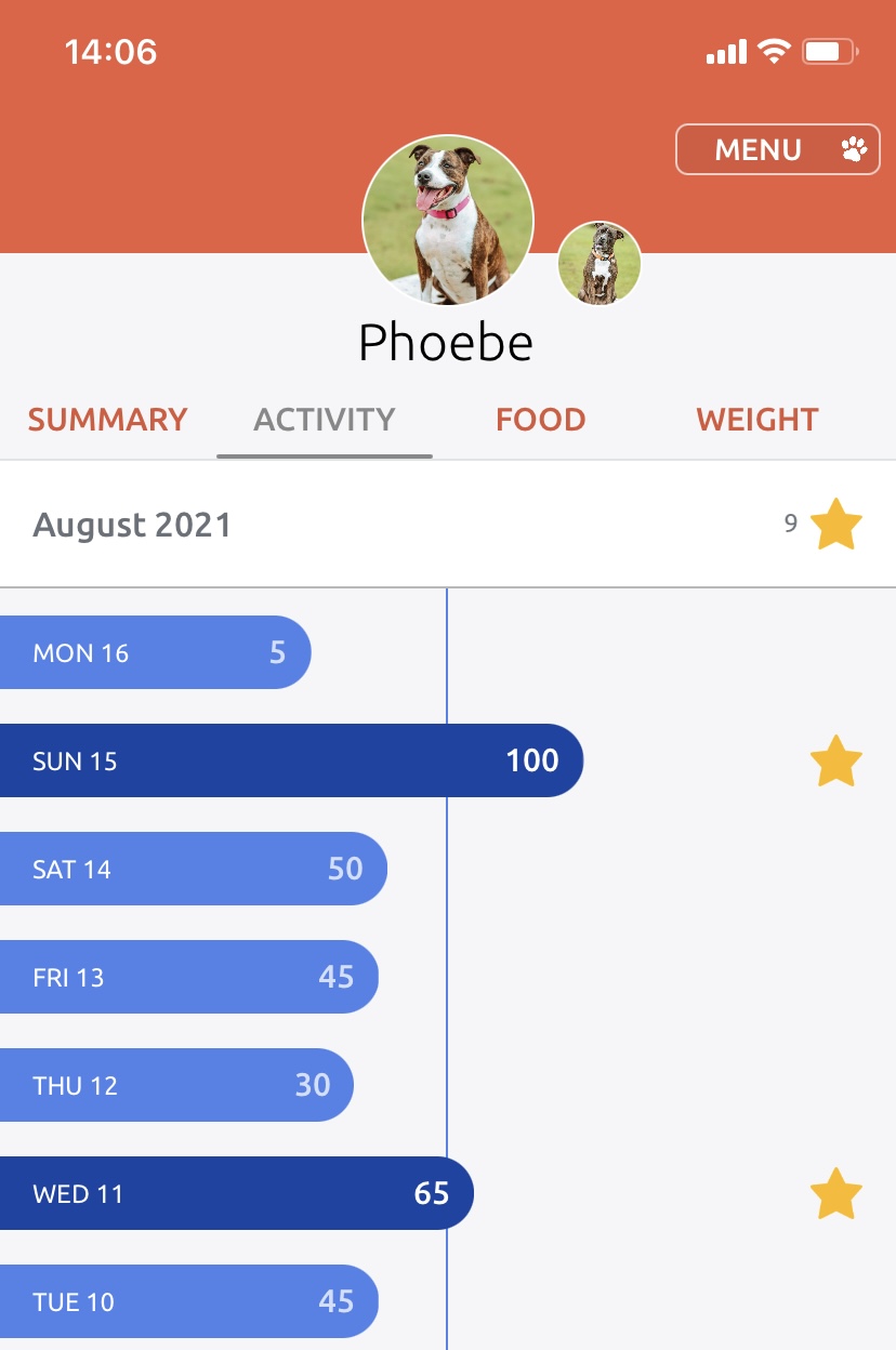 The app shows you how much running, walking and playing your dog does in a day, as well as how much ‘pottering’ and resting. Not only is it a great way to check your pet is getting their steps in with you, but it’s fab for seeing how much energy they’re burning when out with a dog walker or at boarding kennels.