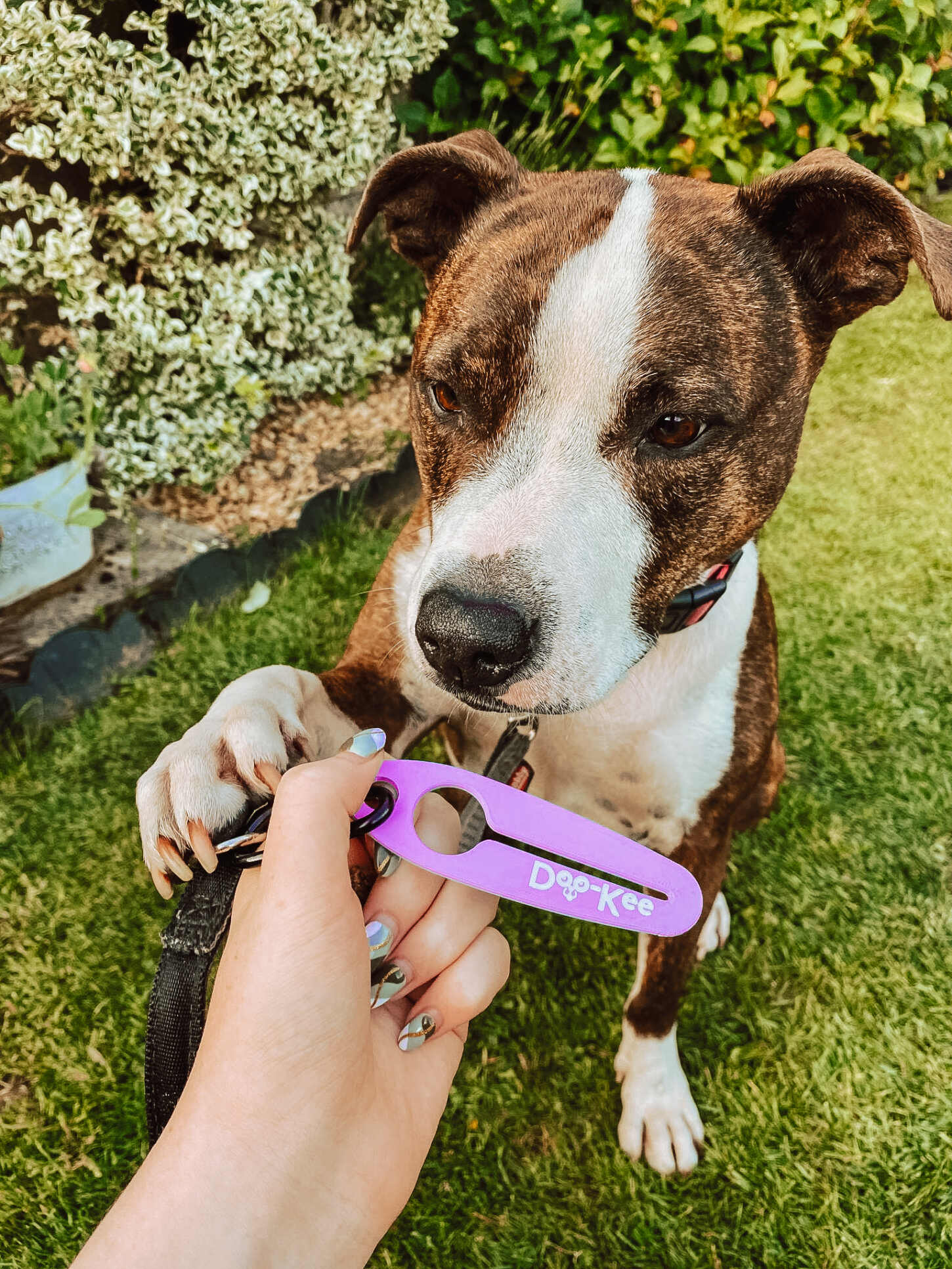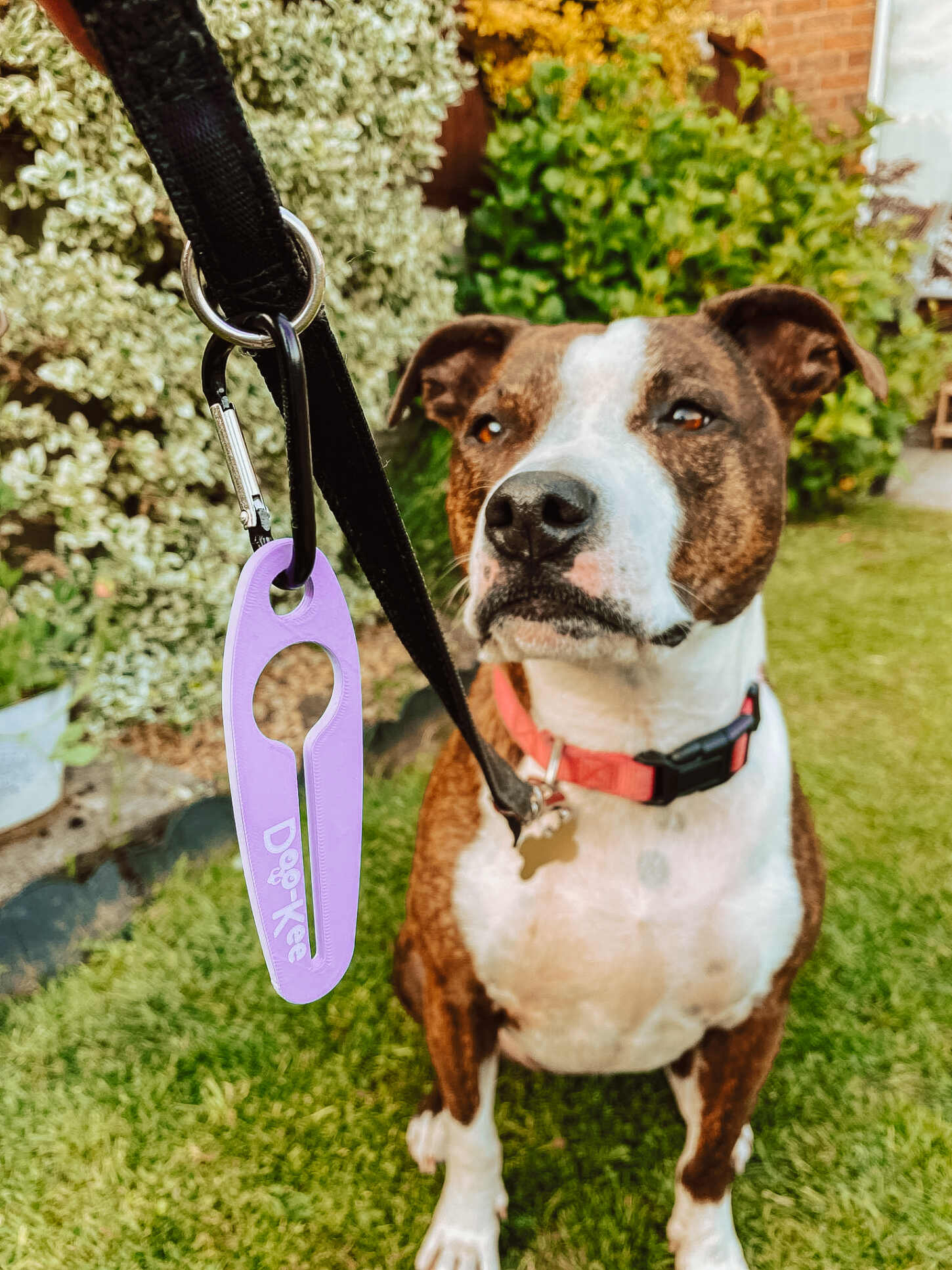 We ordered the Wild Lilac Doo-Kee, which comes with a standard clip like a carabiner – there are larger and more flexible clips available to buy separately. To use the tool, scoop your dogs poop into a bag as usual, knot it and slot it onto the Doo-Kee! You just place the knot of the bag through the wider hole at the top of the keyring, and it’ll stay put until you’re able to dispose of it in a waste bin!