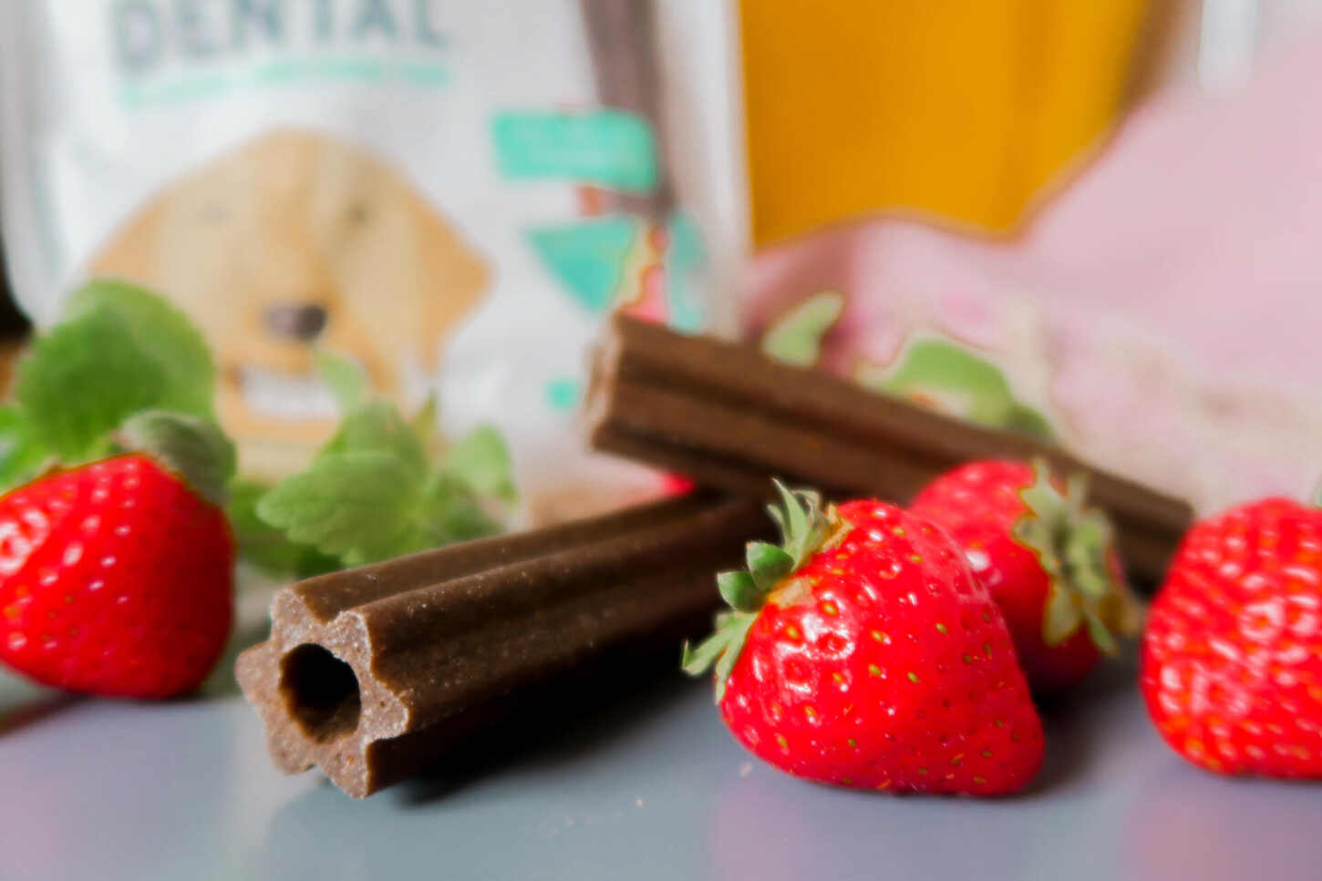 The Edgard and Cooper doggy dental sticks are flavoured with strawberry and coconut – two plant-based flavours that dogs love.