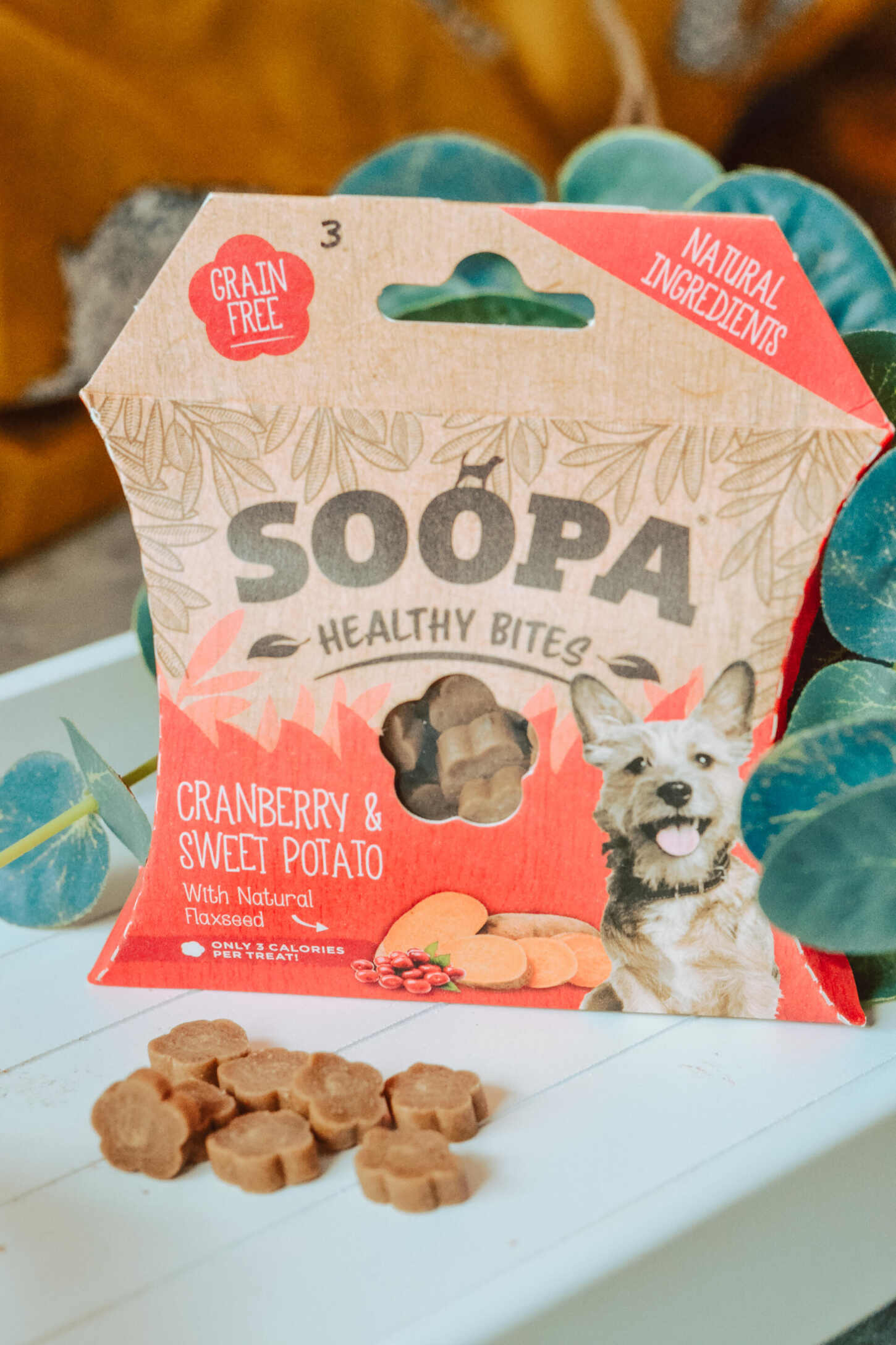 We love the Cranberry and Sweet Potato bites, which are a little flower shaped treat packed with antioxidants, fibre and Vitamin C. The treats are said to be beneficial for dental health and immune support – so their dental sticks are next on our list of things to try. Cranberry is great for dogs prone to UTIs, whilst other ingredients like Flaxseeds are also brilliant suPAW (or Soopa)foods for dogs.