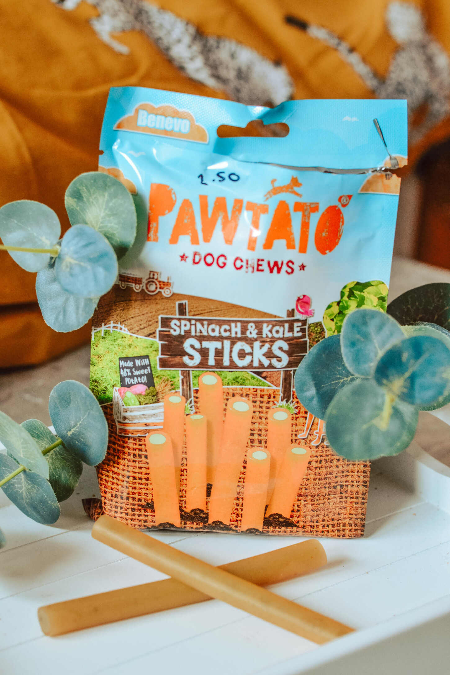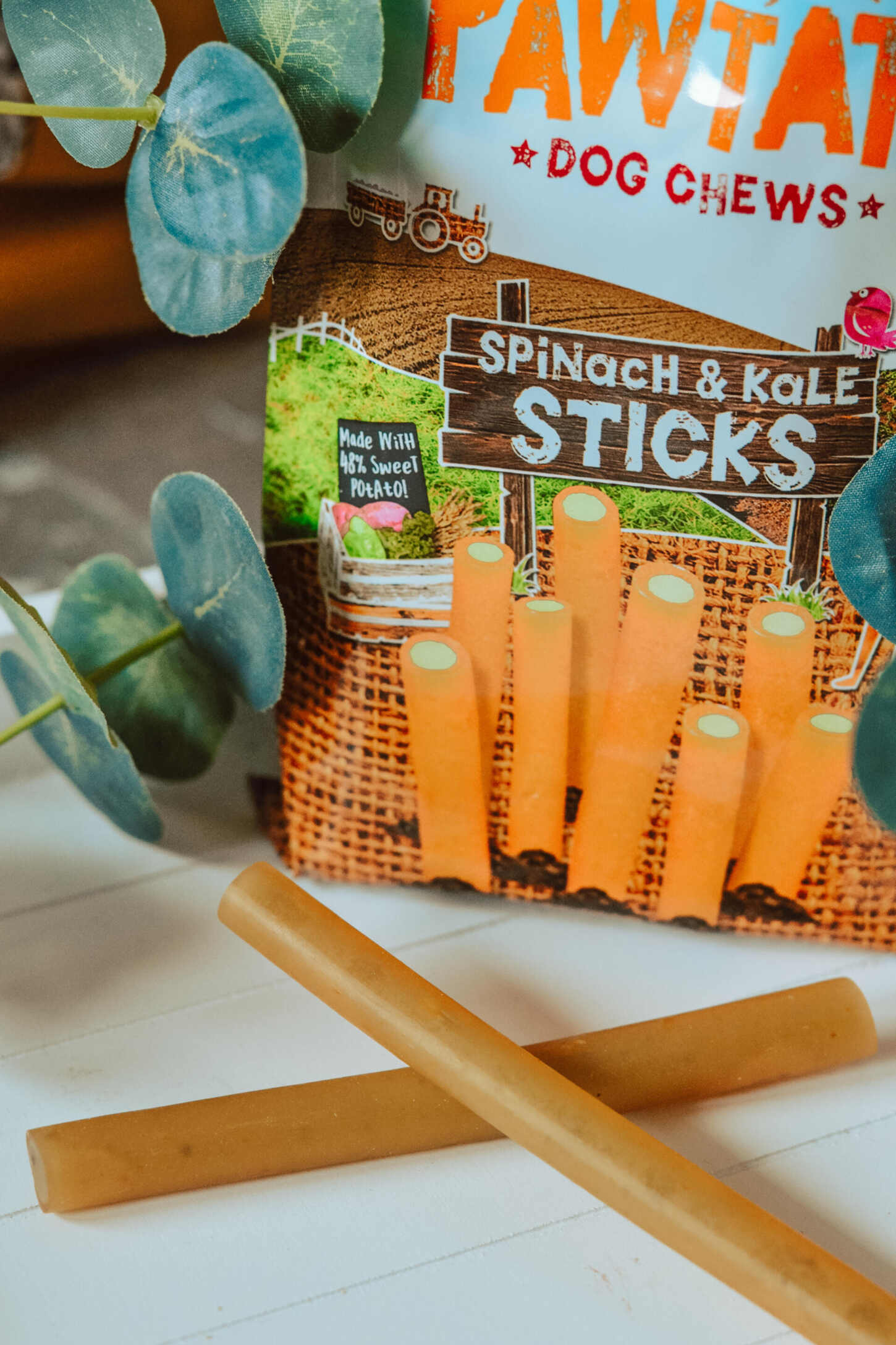 The Scamps are absolutely obsessed with their Pawtato sticks, and will do anything to get their paws on one. The low fat treat is made from organically grown sweet potato flour, corn starch, rice flour, vegetable glycerin, spinach powder, kale powder and potassium sorbate. the Pawtato Sticks actually look a little bit like a hot glue stick, but make a wonderful dental chew. In fact, they tend to last a bit longer than some of the dental chews we’ve tried previously.