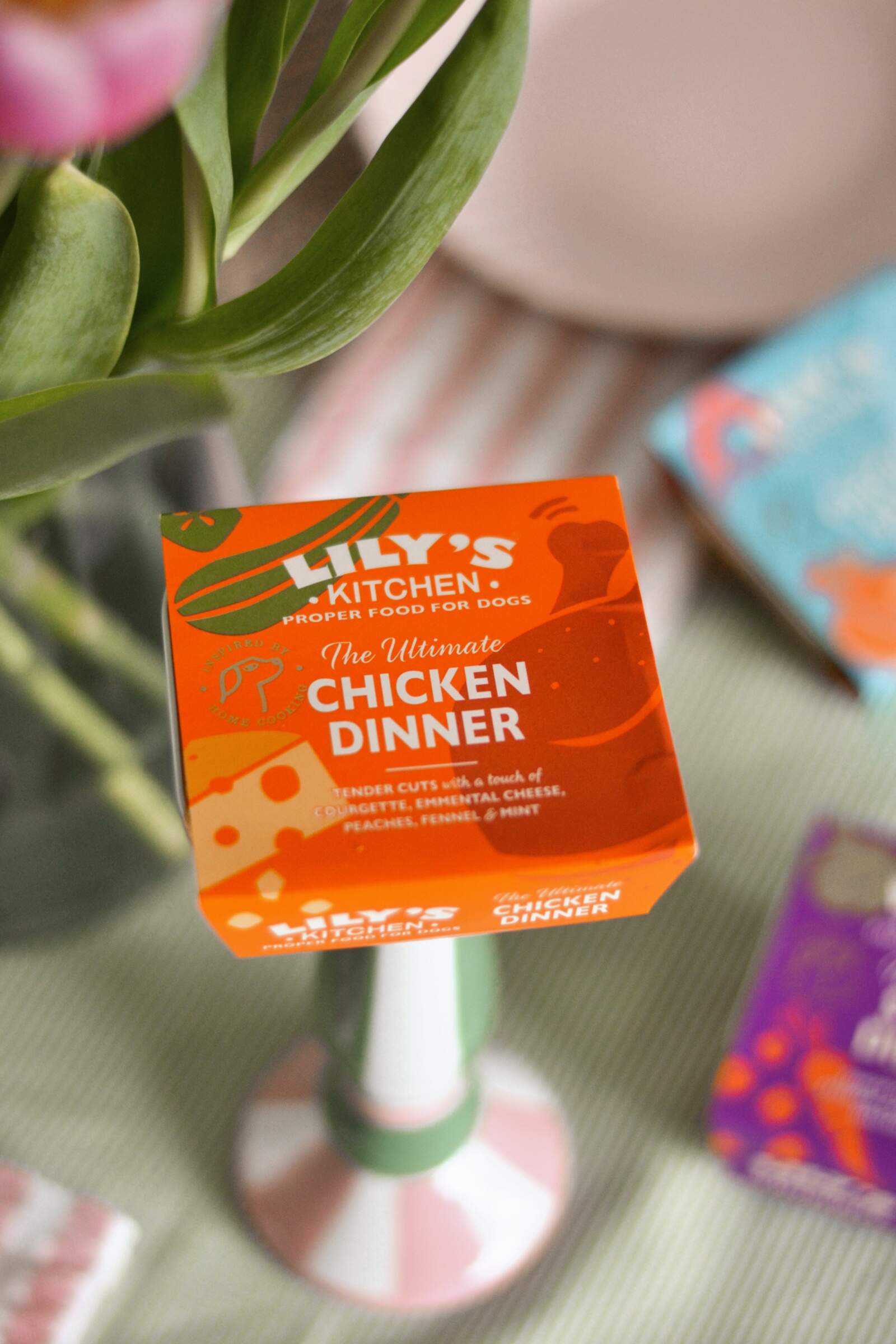 - The Ultimate Chicken Dinner – Your pooch will enjoy tender chicken breast served with diced courgette, sweet peaches, fennel and mint, finished with a sprinkling of Emmental cheese for added temptation.