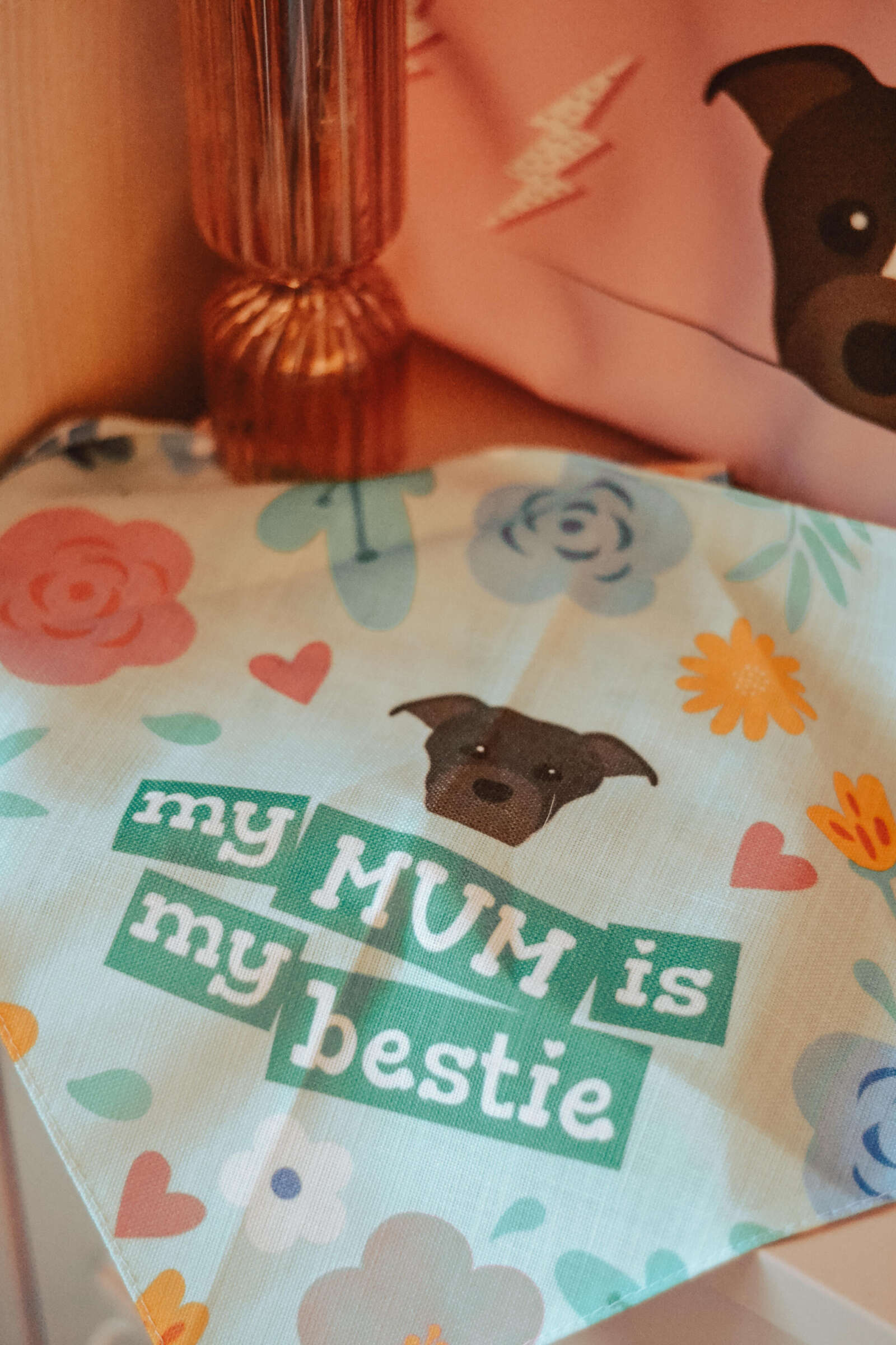 This beautiful floral bandana is a sweet way for your dog to let everyone know that their mum is their bestie! It fits both Phoebe and Frank, with an adjustable neck tie fastening.