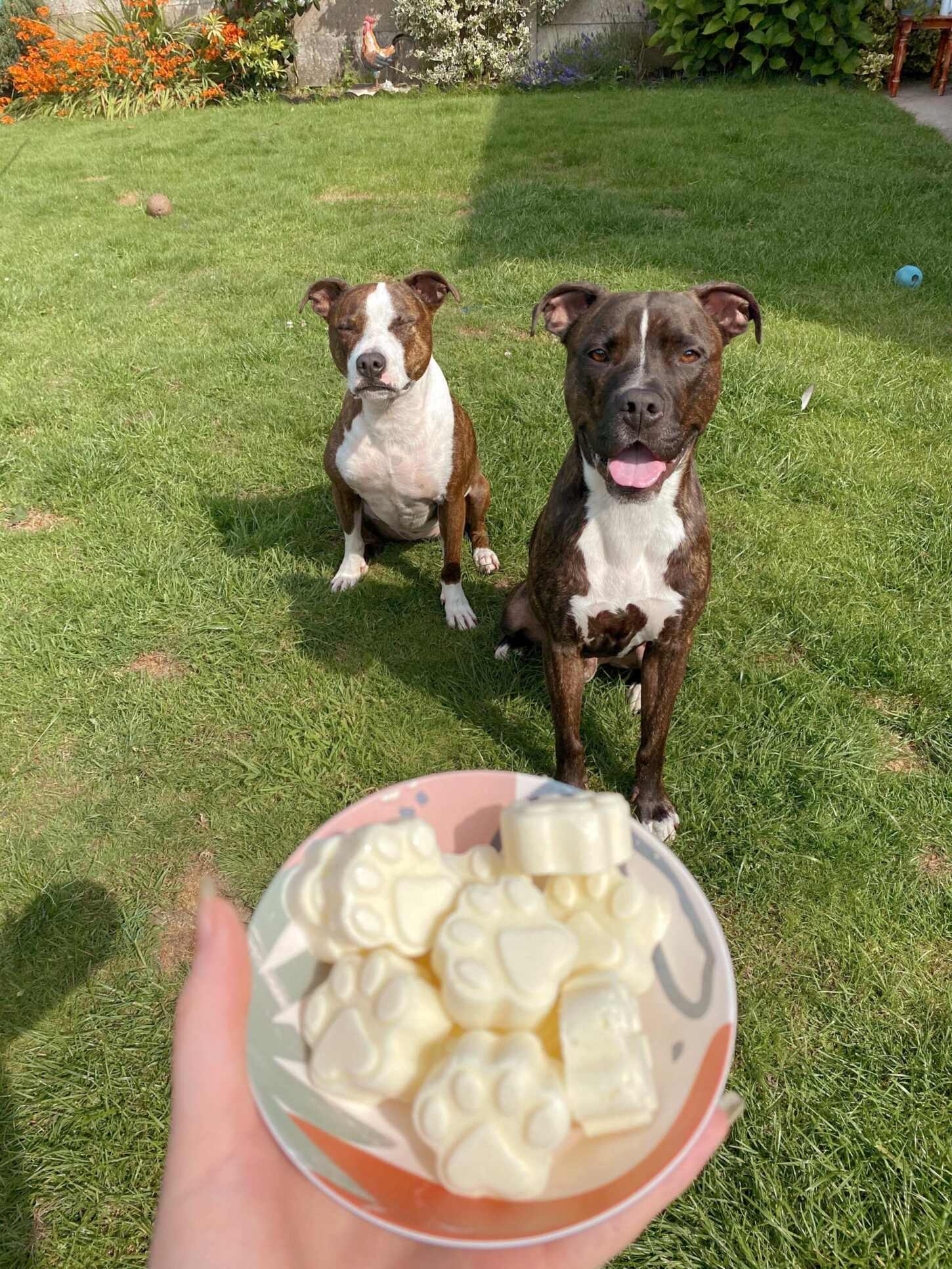 Frozen yoghurt treats are great for dogs during the summer. A bite sized snack can help cool them down when they’ve been playing in the garden. These ones are super easy to make because they only use three ingredients!