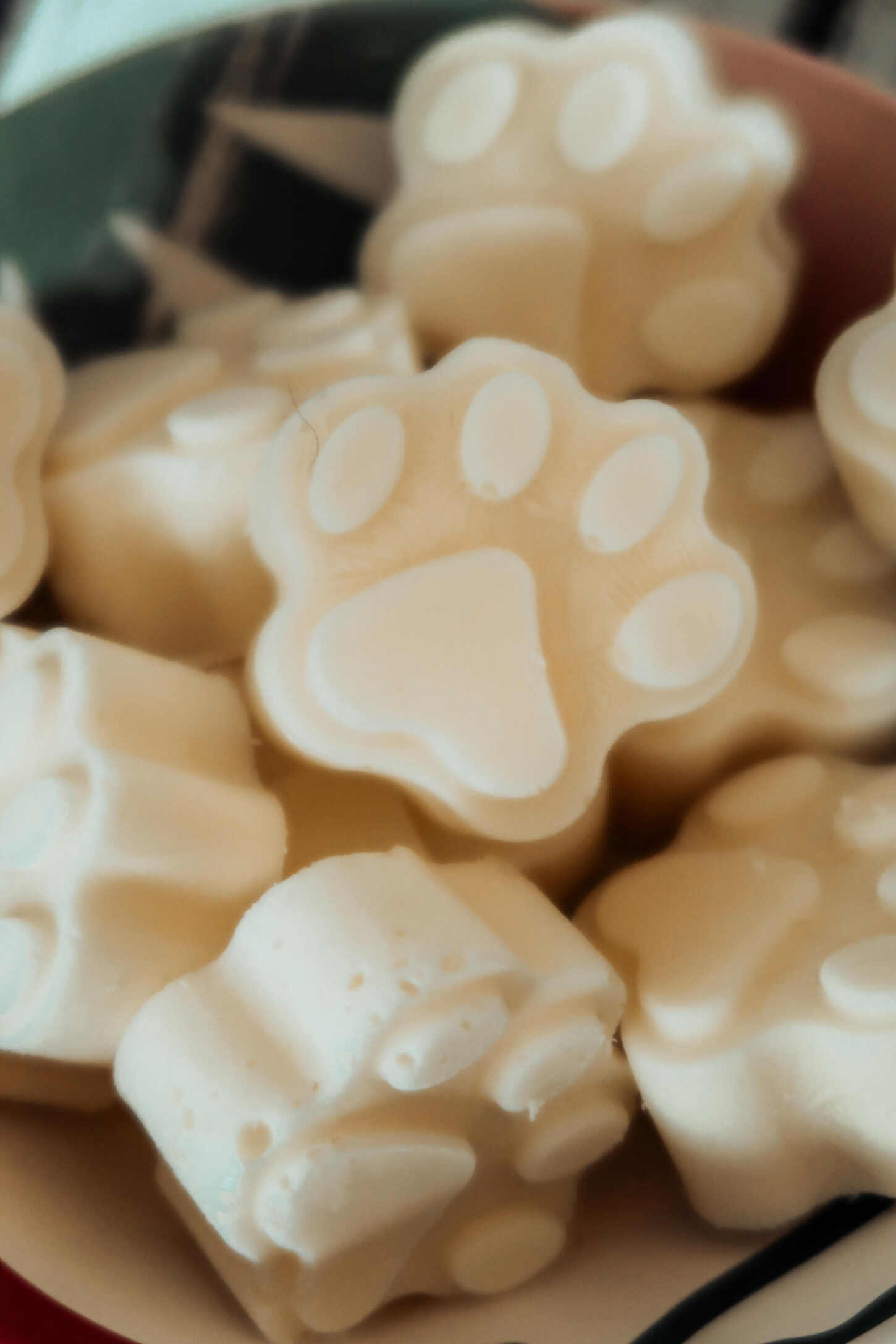 I ordered these paw print moulds from Amazon, which makes 10 treats just over an inch wide.