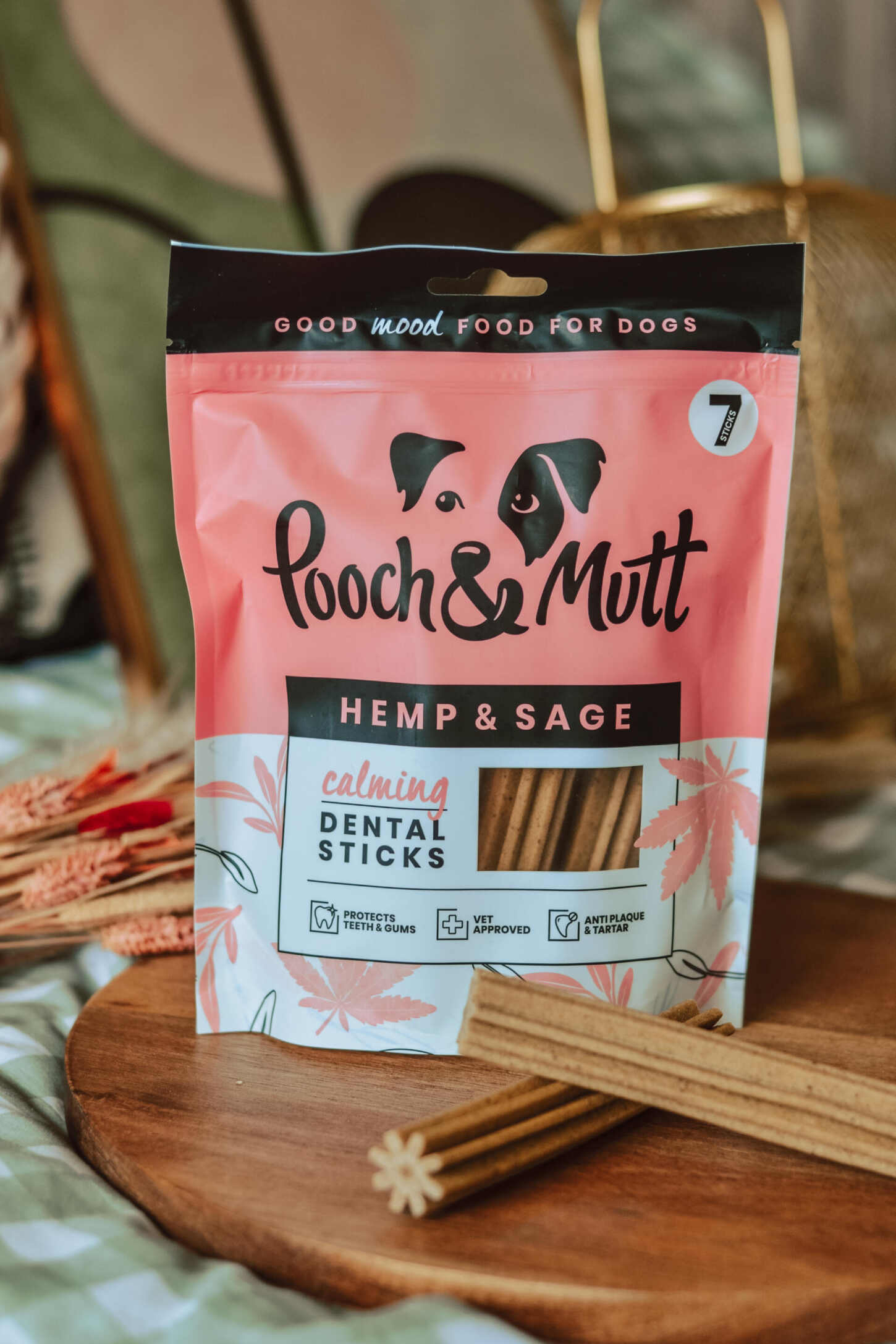 For dogs who are anxious or prone to stress, Pooch and Mutt have also launched a calming daily dental stick with naturally stress-reducing hemp, and has been anecdotally proven to aid sleep and help pets with noise-based phobias.