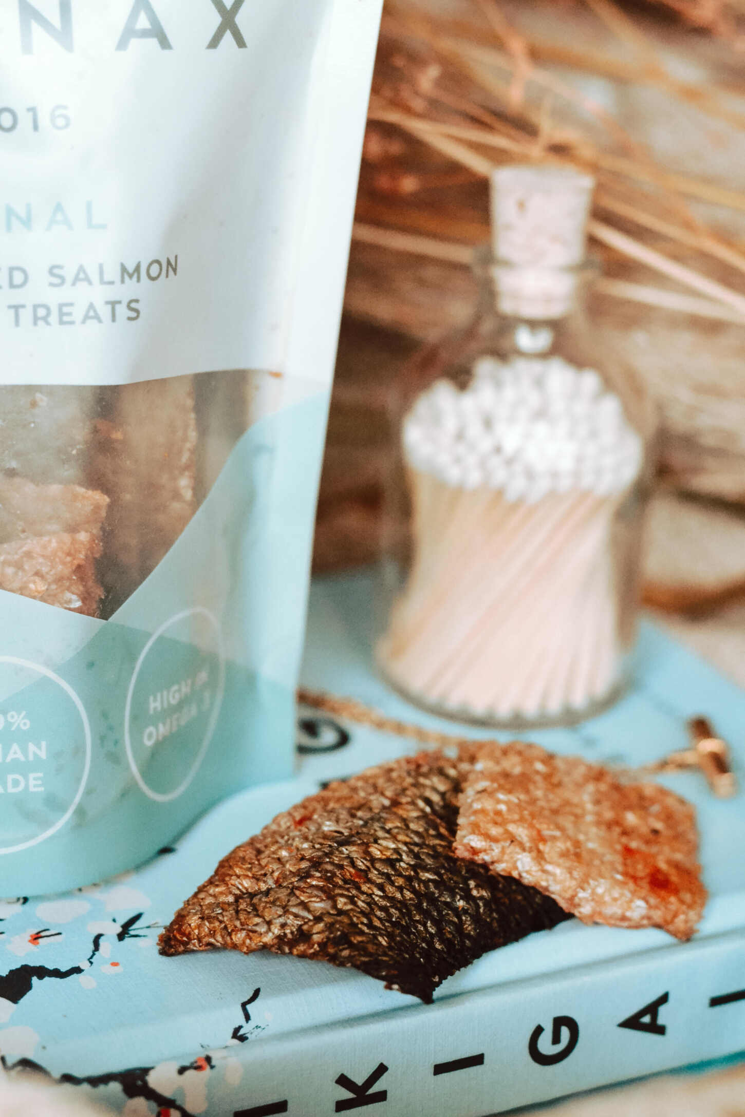 The Sea Snax salmon skin dog treats are a 100% premium human grade treat made of nothing but baked Atlantic salmon skin. The brand was born out of inspiration from Dan and Dom’s sister company, Sea Chips, where they make salmon skin crisps for humans.