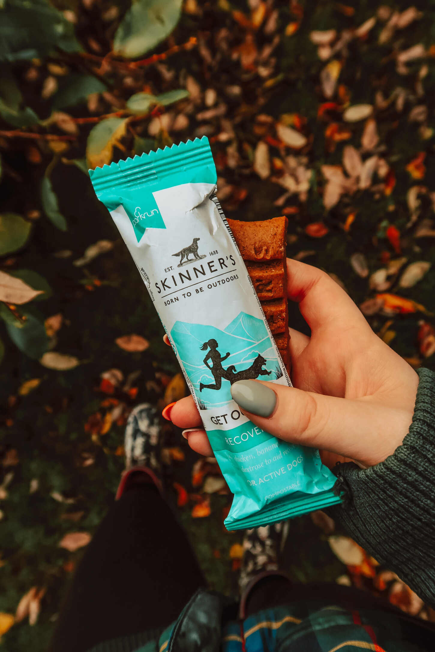 Both of these bars are really handy, and especially good to stock up on if you’re training for an event with your dog or heading on an energetic staycation, but they’re great just to have in the cupboard for those extra long weekend walks where you lose track of time because you’re just having too much fun. I love that they have eight little chunks that spells out Skinners, which was a really nice branding touch.