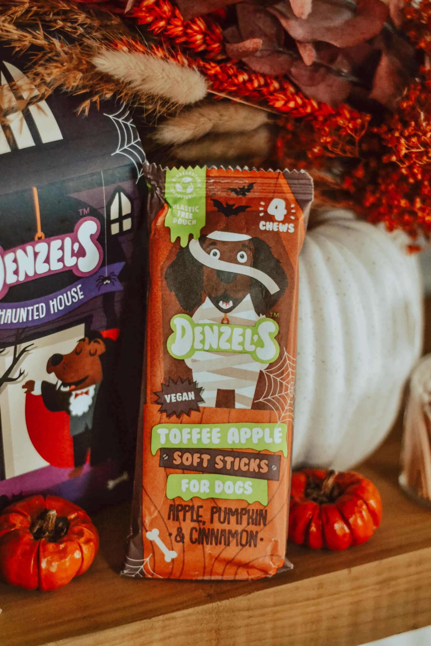 The packaging for these sticks is too cute to spook, with a Mummy Denzel wrapped in bandages surrounded by cobwebs and bats. Inside are four vegan chews that are suitable for puppies and dogs from 12 weeks old, which can be fed whole or easily broken into multiple smaller treats for rewards and training.