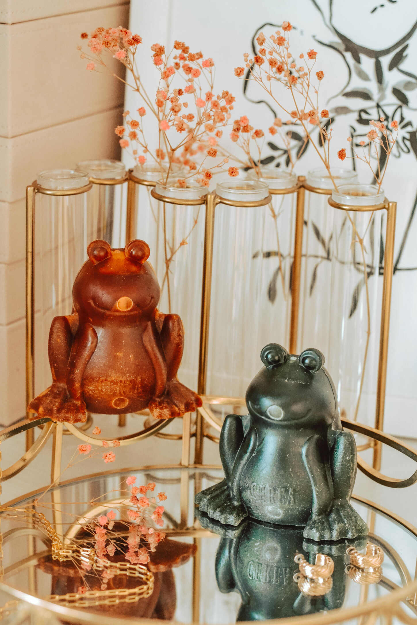 Phoebe and Frank tested out the chews just 24 hours after they launched in store – they simply couldn’t wait to get their paws on them. A large frog stands at around five inches tall, and is intricately detailed with back spines and facial features. Colours between the frogs vary, and the ones we received were a brownish shade, and a green one.